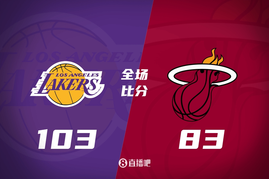 比赛开始,布朗尼先声夺人,抢断暴扣得手后飙中三分,热火一波6-0迅速回应,湖人多点开花连投带罚完成9-0的攻击波重新占据主动,次节斯威德高效输出带队保持优势,布朗尼再中三分率队打出7-0的小高潮将分差拉开到两位数,半场战罢湖人51-38领先热火。易边再战,热火抢占先机打出10-0的攻势迅速迫近比分,湖人冲击内线频频得手稳住局势,贝兹利连投带罚帮助球队重获两位数领先,斯威德再中三分,末节湖人越战越勇,贝兹利三分轰进一举将优势扩大到20分,最终,湖人103-83大胜热火。
