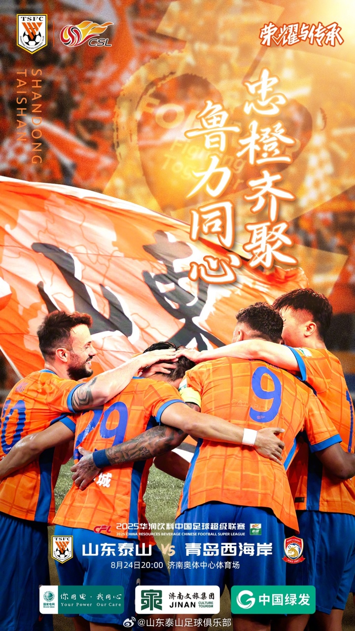08月24日讯 北京时间今晚20点,山东泰山vs青岛西海岸,赛前首发阵容出炉!