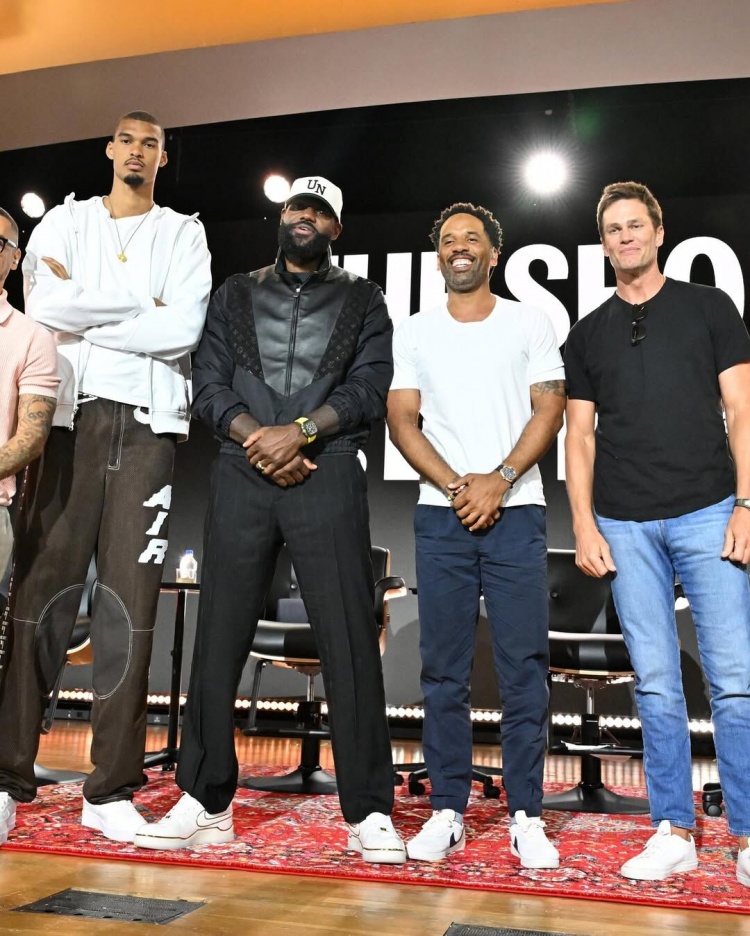 6月27日讯 今日,詹姆斯与文班亚马、NFL名宿布雷迪等上周在纽约Fanatics狂欢节现场录制的个人旗下访谈节目《The Shop》播出完整版。